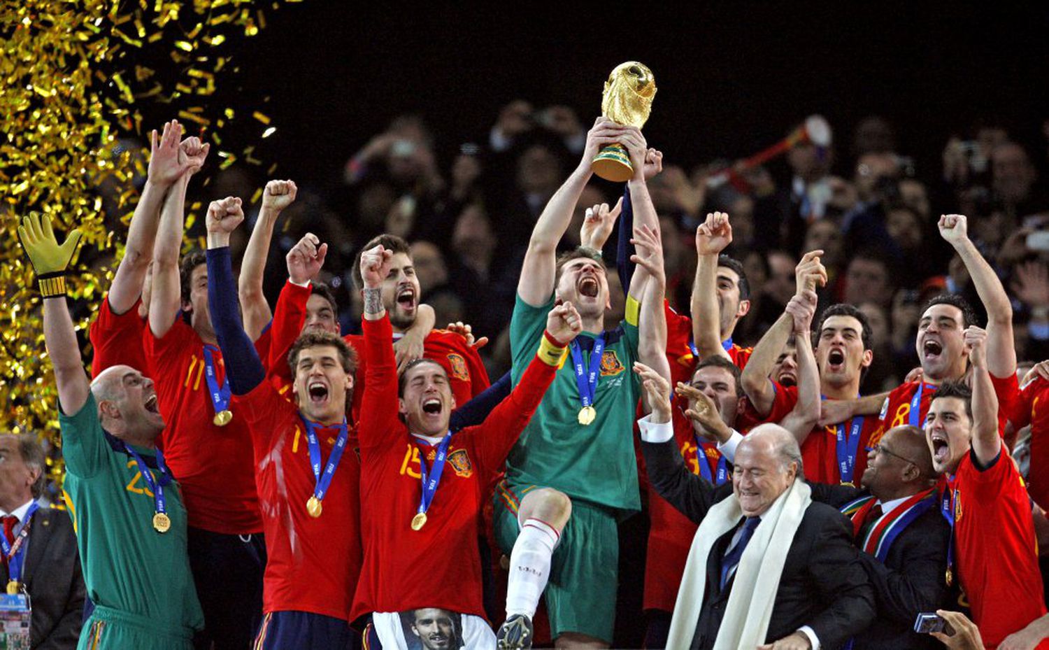 La unión hizo la fuerza y España abrochó por fin el gran título en una noche perruna en Johanesburgo. Por el frío y por los dientes de sierra de los holandeses. Esa noche del 11 de julio de 2010, Holanda no fue, precisamente, el Brasil de Europa, sino una selección más bien matarife. Una selección doblegada en el minuto 116 por un adversario llamado España Fútbol Club.