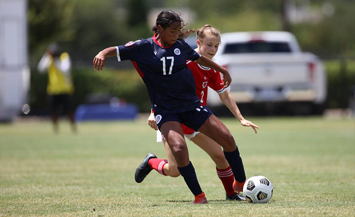 Accion en un juego de fútbol femenino dominicano. Fuente Externa