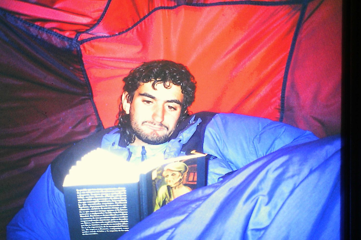 Iosu Merino lee en la cueva de nieve durante su ascensión al cerro Torre. Fuente Externa