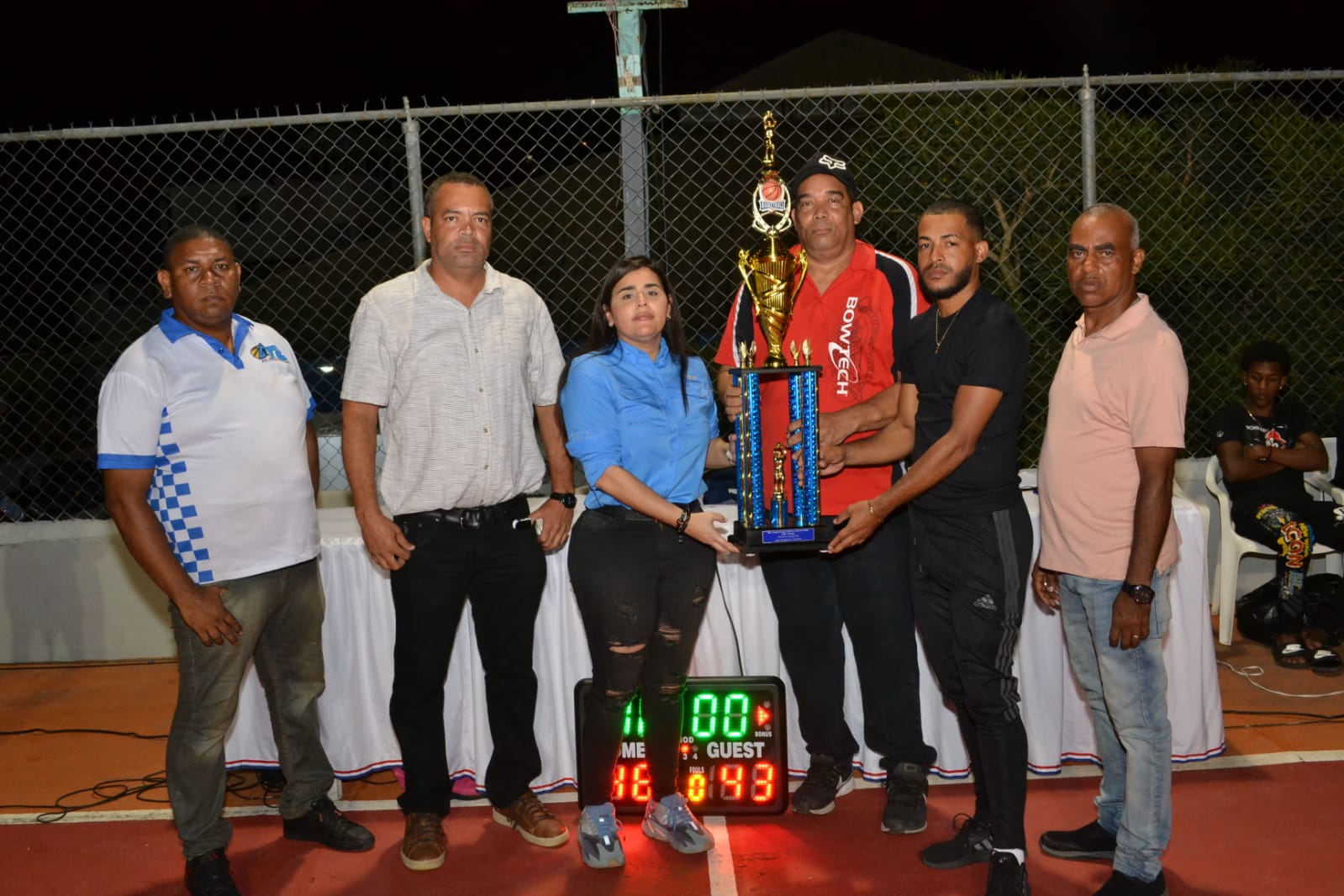 El periodista Tony Reyes entrega la gran copa Periódico el Regional a los organizadores del exitoso evento deportivo. Fuente Externa.
