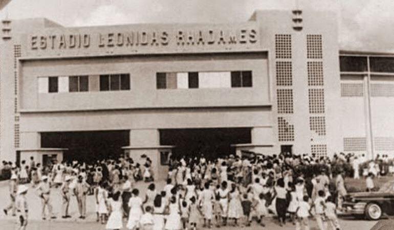 Los fanáticos fueron testigos de la majestuosa apertura del iluminado estadio Leonidas Radhamés, nombre con que fue originalmente bautizado el parque, construido por el Estado Dominicano a un costo de un millón 500 mil pesos, bajo la dirección del ingeniero Bienvenido Martínez Brea, por iniciativa de un grupo de directivos aguiluchos encabezados por Reynaldo “Papi” Bisonó.