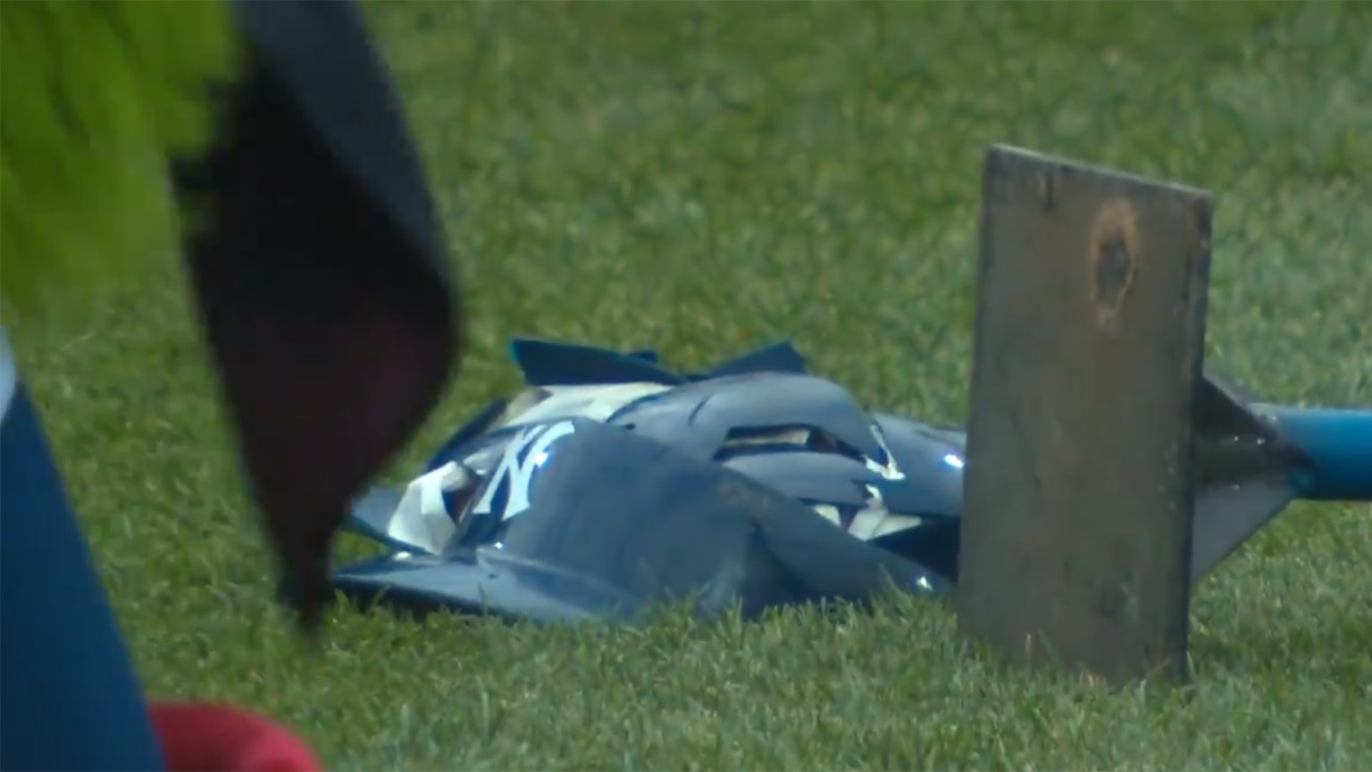 A Giancarlo Stanton le gusta destrozar pelotas. También lleva un casco cuando lo hace. Lo que al cañonero aparentemente no le agrada es que, a la mascota de los Filis, el Phillie Phanatic, despedace un casco de los Yankees como el que el toletero usa en el plato.