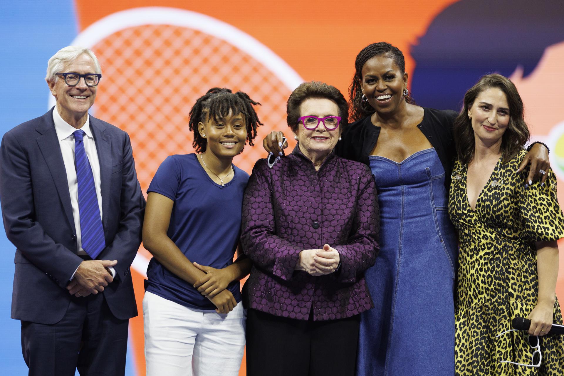«Mientras honramos a Billie Jean King y celebramos este torneo y este increíble logro, recordemos que todo esto es mucho más importante que un cheque para el campeón. Esto tiene que ver con cómo se mira a las mujeres y cómo son valoradas en este mundo», dijo Obama en el Arthur Ashe Stadium, la pista de tenis más grande del mundo (con capacidad para casi 24.000 espectadores).