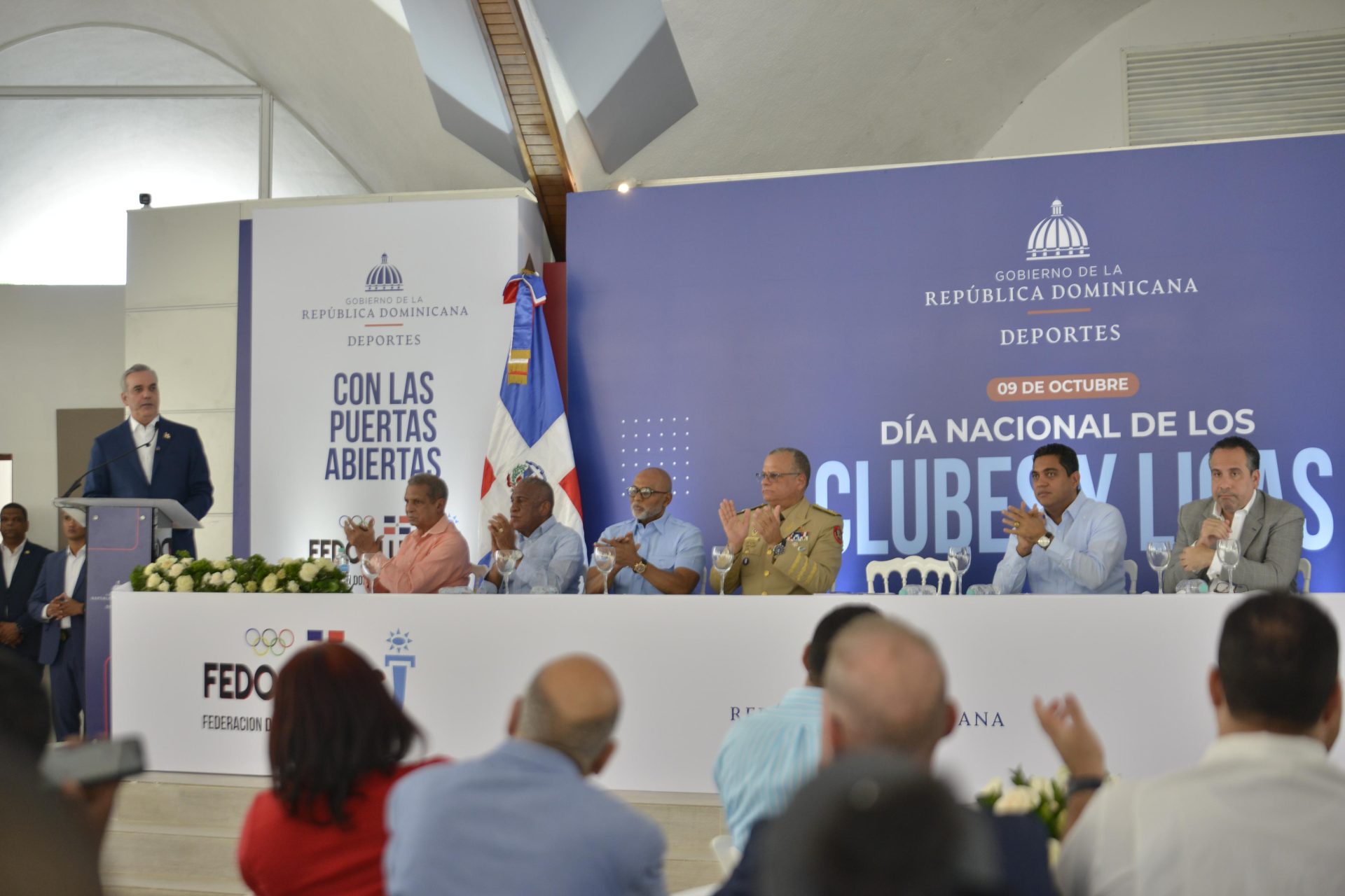 Santo Domingo.- El presidente Luis Abinader, en un acto sin precedentes, no solo acudió este 9 de octubre a conmemorar el Día Nacional de los Clubes, sino que almorzó con sus dirigentes y anunció que en 2025 se ejecutará un plan de construcción de más de 45 polideportivos a los fines de trabajar unidos, como parte de las ejecuciones del Gobierno para reducir los índices de delincuencia.