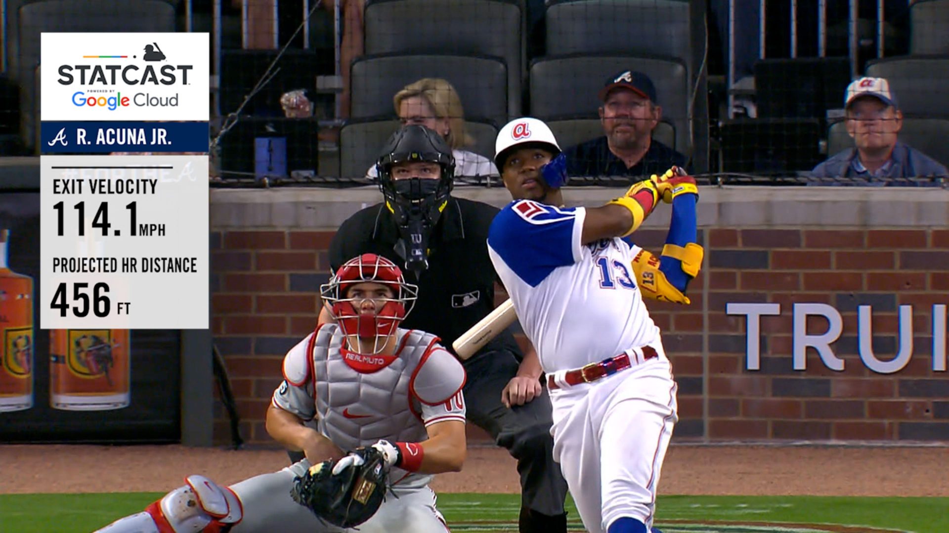El venezolano Acuña conectó su jonrón de aproximadamente 456 pies en el quinto episodio frente a Zack Wheeler (1-1). La pelota cayó en las gradas frente al jardín central, atrás del bullpen de los Bravos, para ponerlos en ventaja de 2-1.