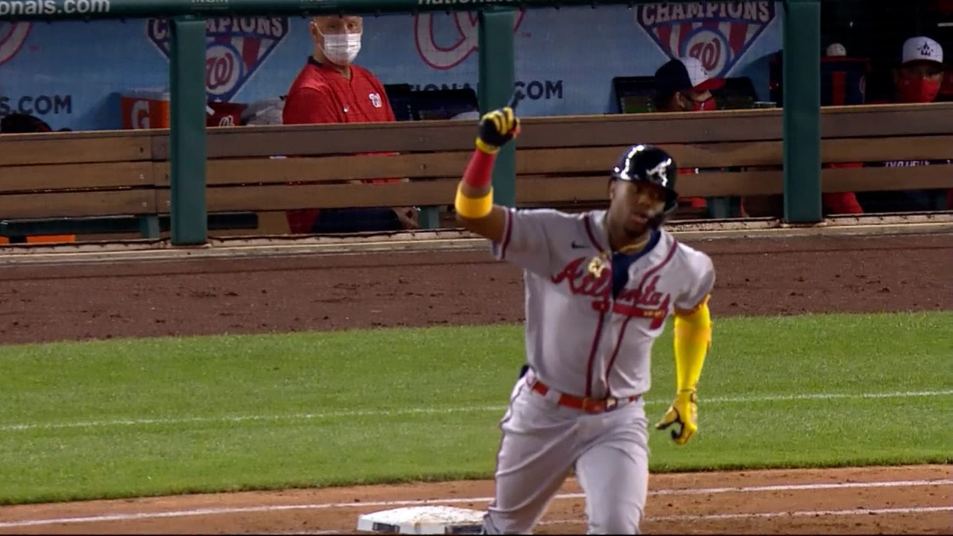 En el juego entre Bravos y Nacionales la noche del martes en Washington, el dominicano Huáscar Ynoa y Joe Ross colgaron ceros en los primeros cuatro innings. Hasta que llegó Acuña con dos outs en la alta del quinto para mandar el pitcheo de Ross en 1-2 sobre la pared entre el central y el derecho, dándole ventaja de 1-0 a los Bravos.