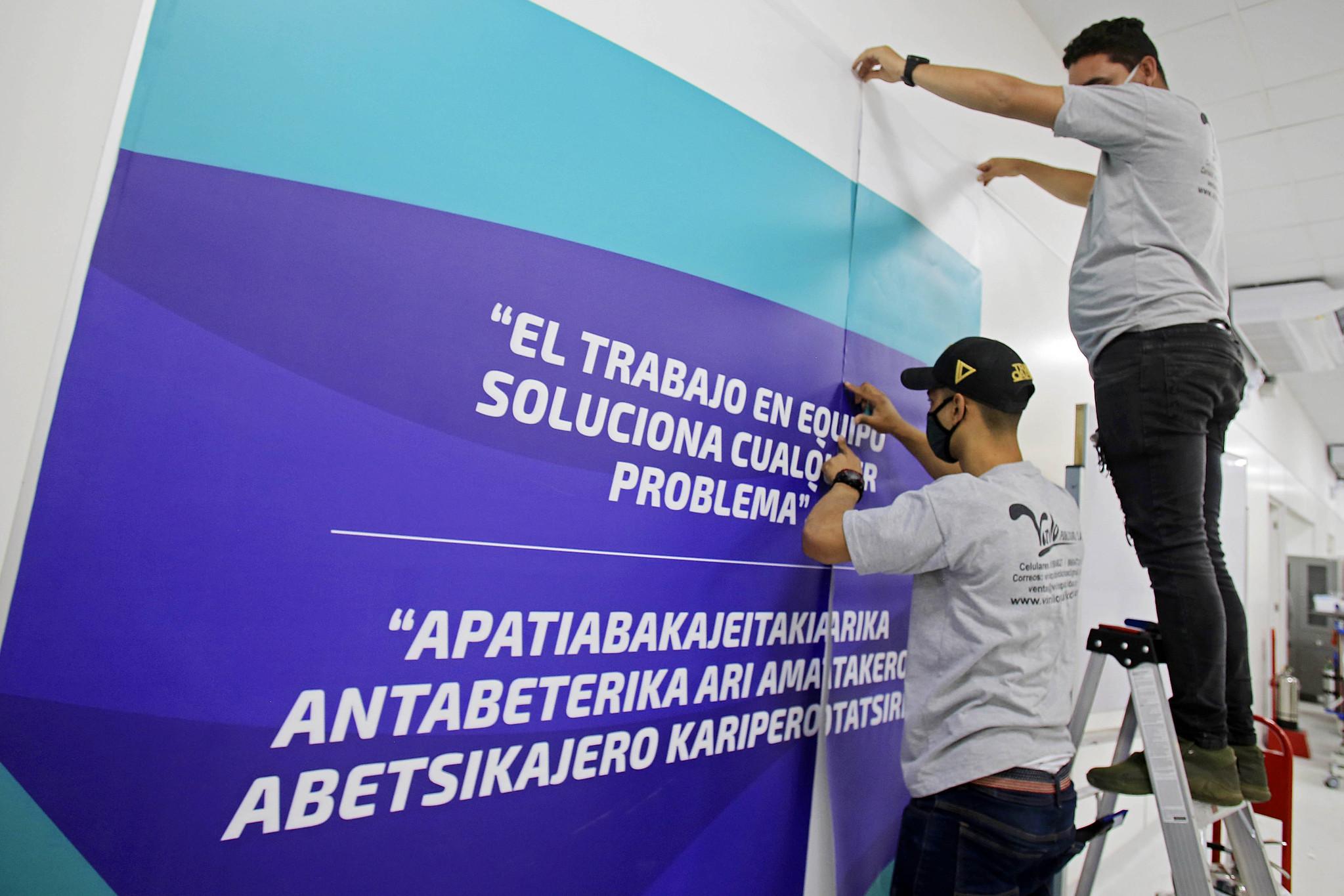 Al interior de las instalaciones de los CAAT se pueden leer mensajes como: “Saldremos adelante con determinación y constancia (ari anakotakero aririka akobanake keme paitarika kantachane otime añaperotibentyaro)”. “La inspiración llega si tenemos constancia (yuyay chaskiyqa chayamun mana qasiyuspa imatapas ruwaqtinchismi)”. “Todos estamos en el mismo equipo, sólo unidos lograremos vencer (ashí ijunjamununum pachitkaji, ayatak atunika depetmaktatji)”.