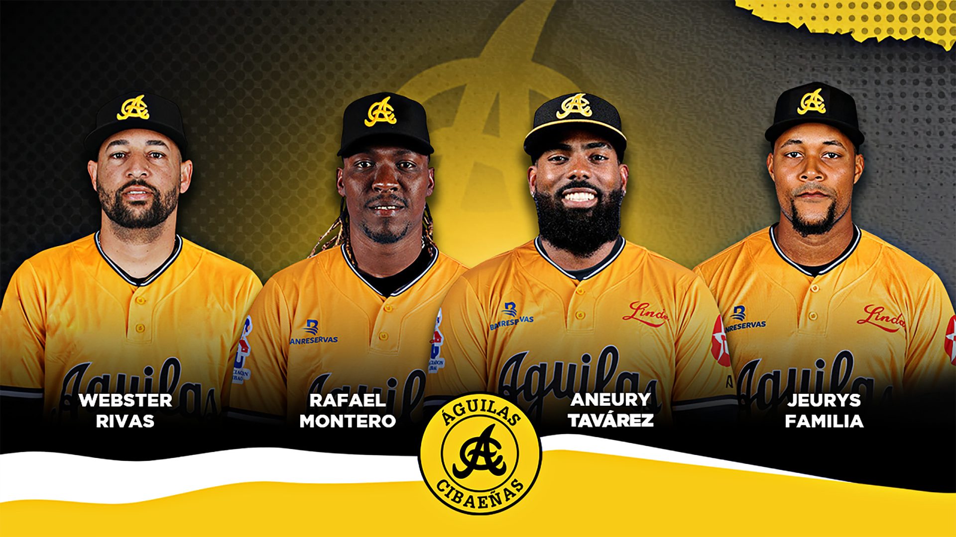SANTIAGO.-Las Águilas Cibaeñas dan una calurosa bienvenida a los nuevos miembros de la organización, el receptor Webster Rivas, los lanzadores Rafael Montero y Jeurys Familia y el jardinero Aneury Tavárez, firmados en la agencia libre en los últimos días.