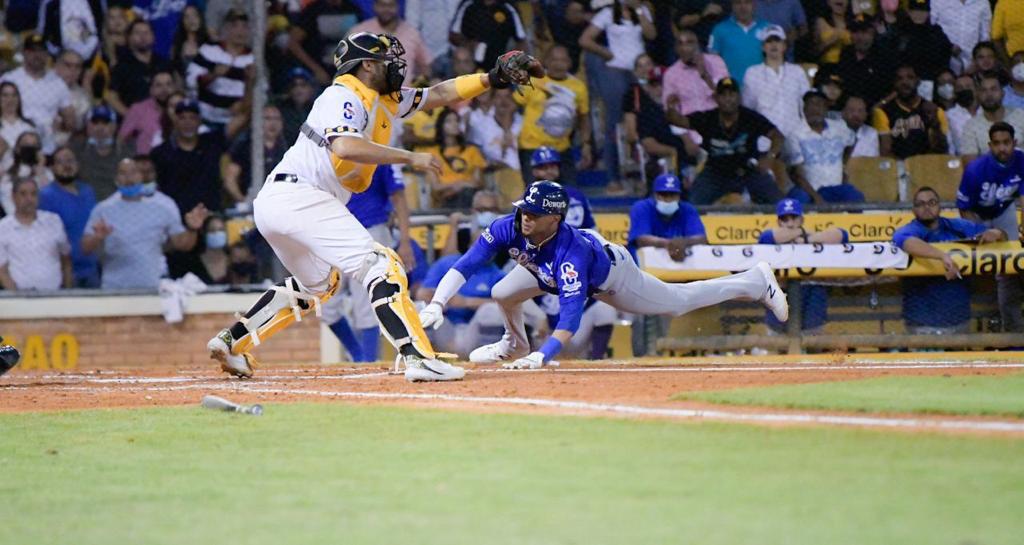 Los cibaeños igualaron la pizarra 1-1 en el sexto frente al abridor Brandon Lawson por sencillo de Orlando Calixte. El corredor de la inicial se movió a la intermedia por passed ball del receptor azul. Leody Taveras falló con rodado por intermedia llegando Calixte a la antesala desde donde anotó por elevado de sacrificio al bosque central de Juan Lagares.
