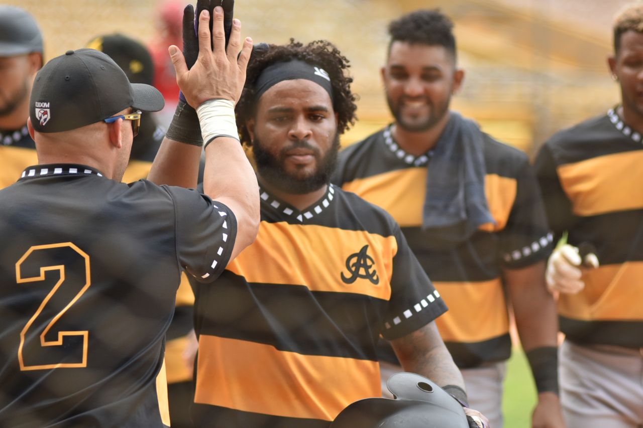 Los mejores al bate por los escarlatas fueron Miguel Gómez y Jonathan Guzman,quienes despacharon sendos cuadrangulares y un sencillo cada; Erick Gonzalez dos incogibles, Jhailyn Ortiz un doble, Joseph Rosa, Osvaldo Duarte e Ibandel Isabel un sencillo por cabeza.