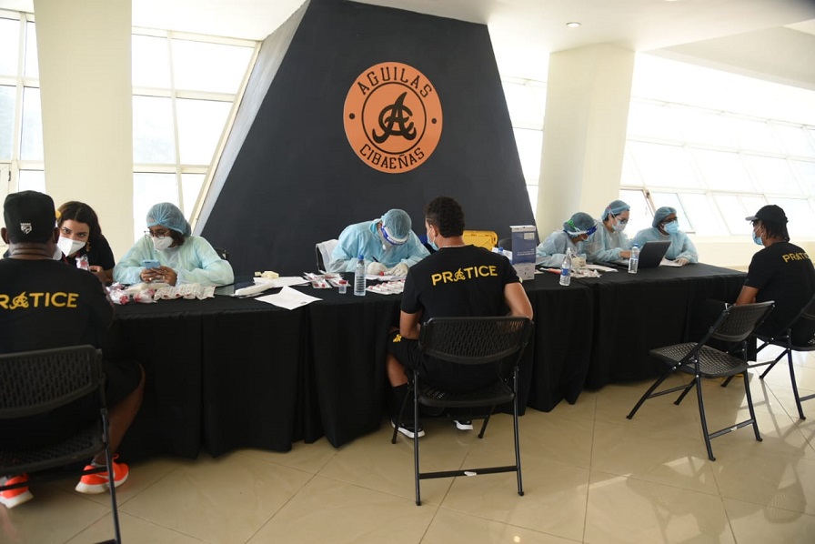 SANTIAGO. -La segunda jornada de las pruebas del Covid -19 a los jugadores de las Águilas Cibaeñas fue realizada hoy por personal médico especializado del Ministerio de Salud Pública, con la novedad de la integración de nuevos jugadores al” Early Camp”, liderados por Ronny Rodríguez, Francisco Peña y Juan Nicasio.
