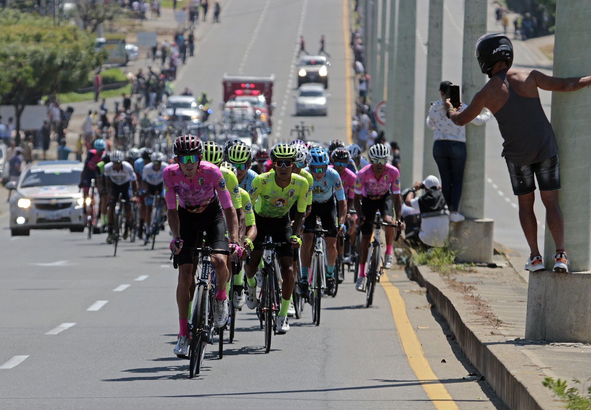 Un grupo de ciclistas fue registrado este sábado, 21 de enero, durante la séptima etapa de la Vuelta al Táchira 2023, en la ciudad colombiana de Cúcuta (Norte de Santander, Colombia). EFE/Mario Caicedo