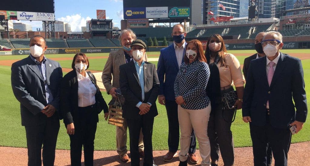 El Alcalde del municipio Santo Domingo Este (SDE), Manuel Jiménez, se reunió con el vicepresidente ejecutivo de los Bravos de Atlanta, Jeremy J. Strife. Fuente Externa.