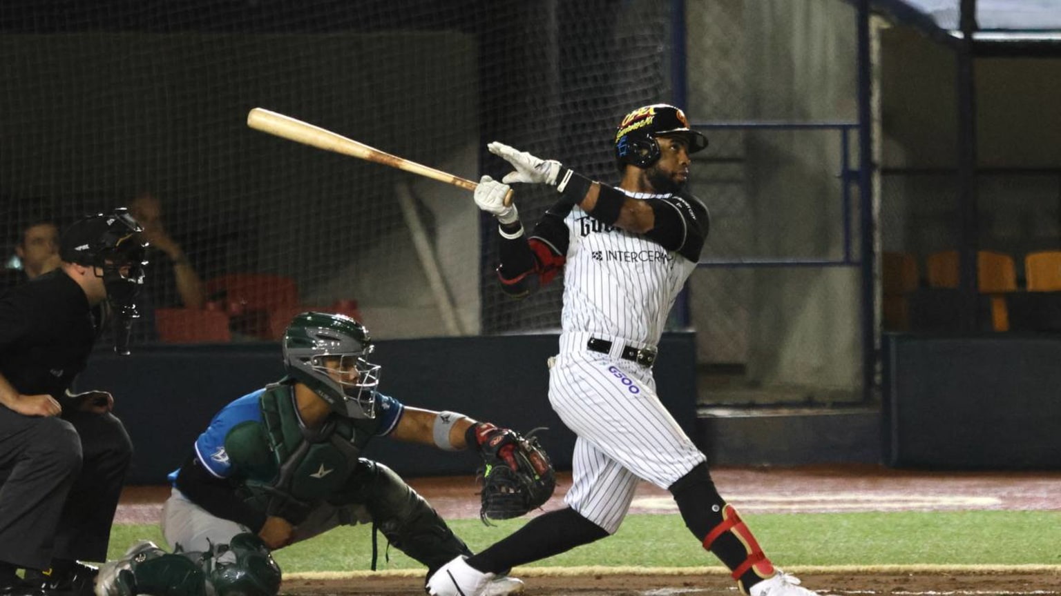El dominicano Jerar Encarnación conectó cuadrangular de dos carreras en la baja de la tercera entrada, esto para aumentar la ventaja de los Bélicos a 5 carreras por 2. Suma 13 estacazos para ser el líder.