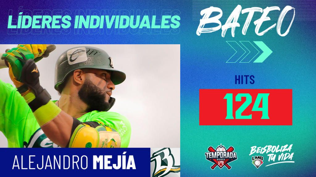 Ciudad de México (www.lmb.com.mx).- Nadie conectó más imparables en la temporada regular 2023 que Alejandro Mejía. El cañonero de los Bravos de León disparó 124 indiscutibles, para superar a Julián Ornelas (123), Yadir Drake (120), Michael Robles (116) y Gustavo Núñez (116).