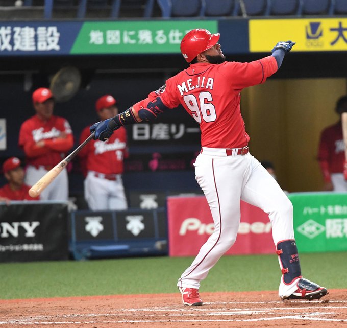 JAPON.-El dominicano Alejandro Mejía conectó este miércoles un doble y un sencillo en 4 turnos, anotó una carrera y remolcó a 2 compañeros para contribuir al triunfo de 11-0 de los Carpas de Hiroshima sobre las Golondrinas de Yakult en el juego de pretemporada disputando en el Estadio Meiji Jingu de Tokio.