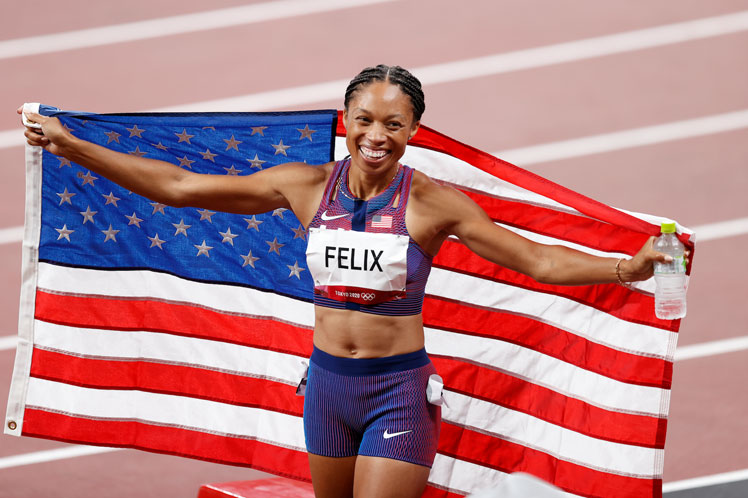 Tokio, 7 ago (Prensa Latina) La experimentada velocista estadounidense Allyson Felix ganó hoy aquí su séptimo título dorado en Juegos Olímpicos, al ganar la final del relevo 4×400 metros del atletismo.