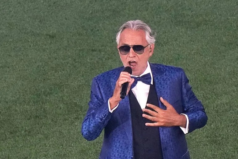 ROMA.- El tenor Andrea Bocelli impresionando con su voz, mientras que los fuegos artificiales se encendían en la ceremonia de apertura de la Eurocopa, que contaba con elementos atractivos, pero la principal estrella fue el público, con 16.000 personas en la grada.