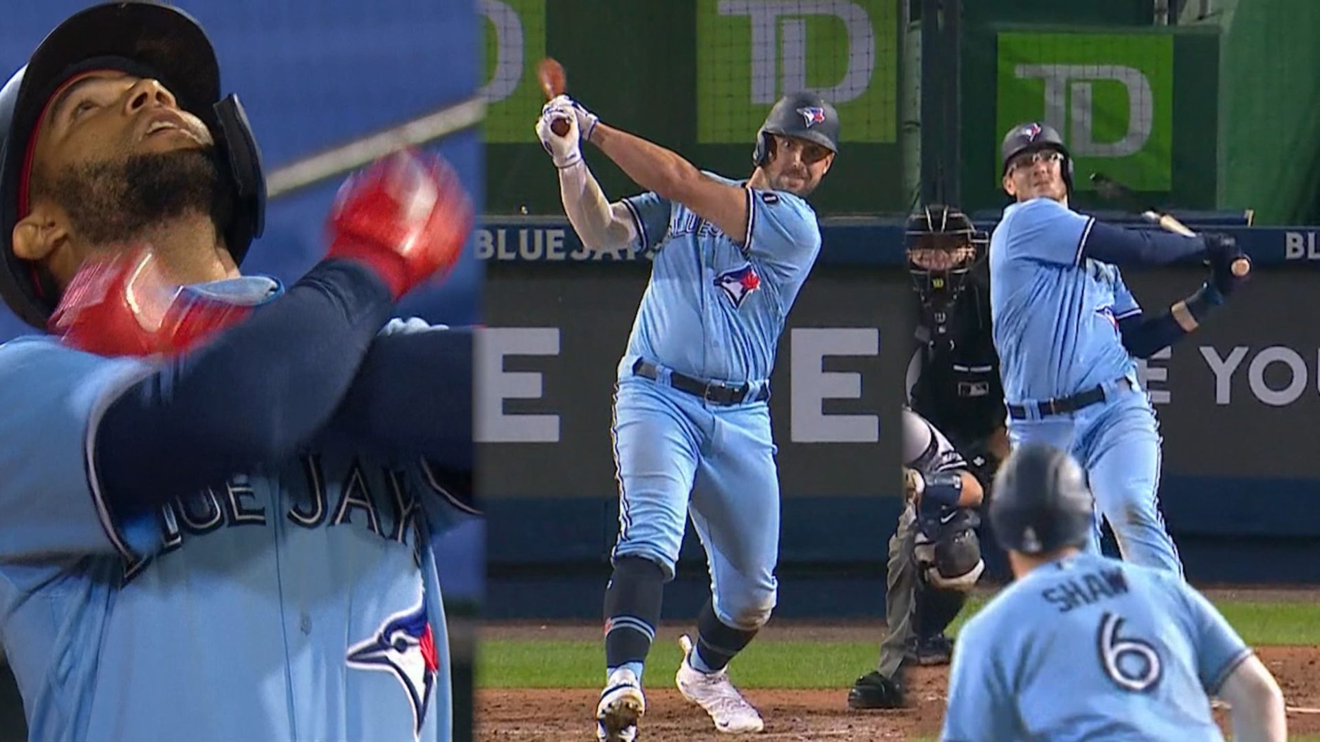 Por los Azulejos, los dominicanos Vladimir Guerrero Jr. de 4-2 con dos producidas y una anotada; Santiago Espinal de 2-1 con una impulsada y una anotada; Jonathan Villar de 4-0 con una anotada. El cubano Lourdes Gurriel de 5-3 con una impulsada y una anotada.
