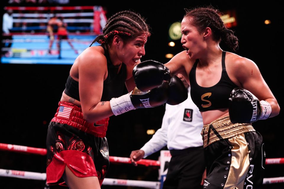 Seniesa Estrada (der.) maltrató a Marlen Esparza en noviembre de 2019. FOTO: AMANDA WESTCOTT/DAZN / CORTESÍA