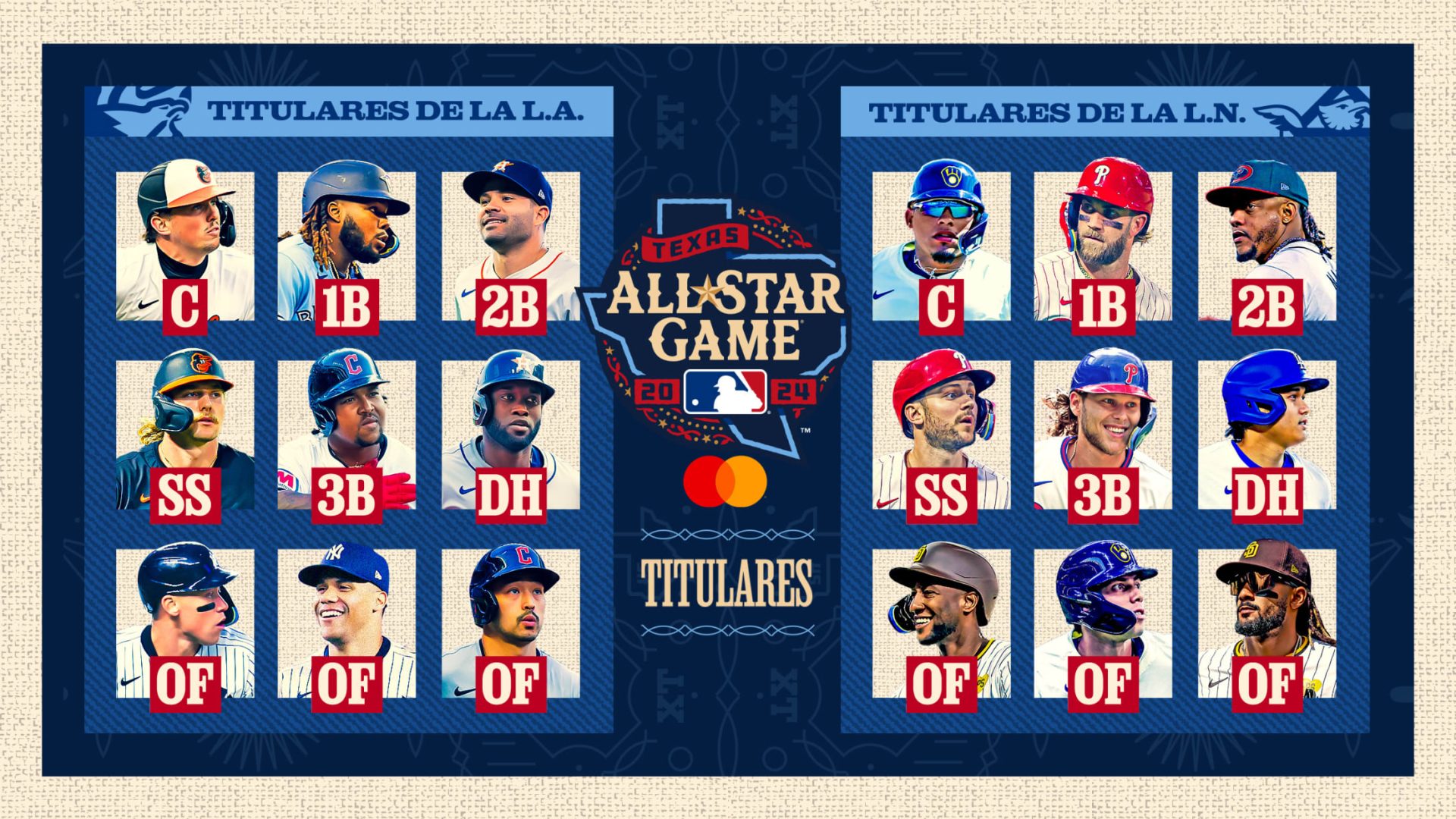 Fueron anunciados los jugadores que abrirán el Juego de Estrellaspresentado por Mastercard, a jugarse el 16 de julio en el Globe Life Field de Arlington, al revelarse los resultados de la Boleta All-Star 2024 presentada por BuildSubmarines.com.