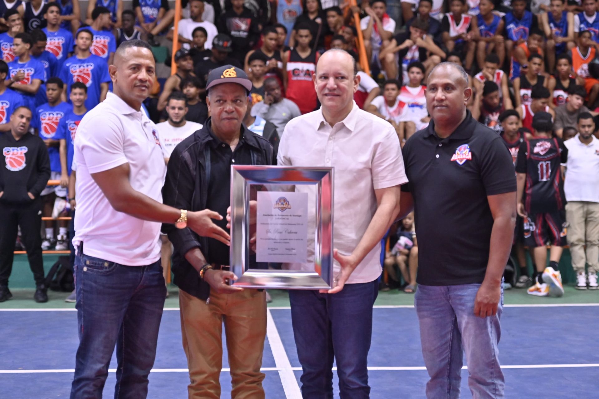 Durante el acto, los hermanos Aracena y el alcalde Ulises Rodríguez entregaron una placa de reconocimiento al homenajeado René Rosario Cabrera, destacando sus valiosos aportes al baloncesto por varias décadas. Visiblemente emocionado, Cabrera agradeció el gesto entre lágrimas y resaltó la excelente labor que viene realizando el comité ejecutivo de la Abasaca en beneficio de la sociedad.