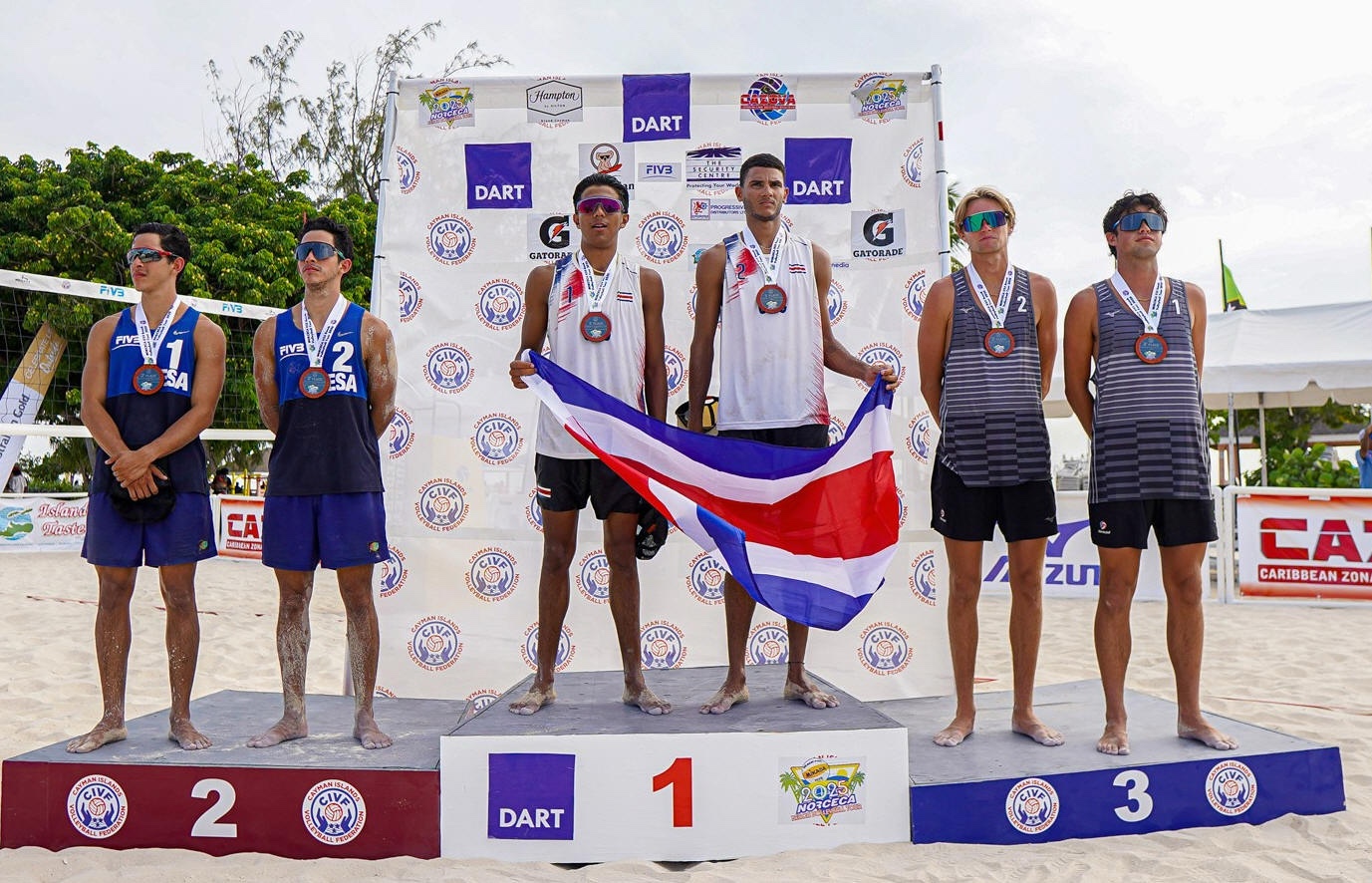 SEVEN MILE BEACH, Islas Caimán, 22 de junio de 2025. – Los costarricenses Julián Araya y Jhostin Varela defendieron con éxito su título al conquistar por segunda ocasión consecutiva la medalla de oro en el Tour NORCECA U23 de Voleibol de Playa, tras vencer con autoridad 2-0 (21-19, 21-15) a los salvadoreños Christopher y Yoel Guardado en la final disputada este domingo en la emblemática Seven Mile Beach.