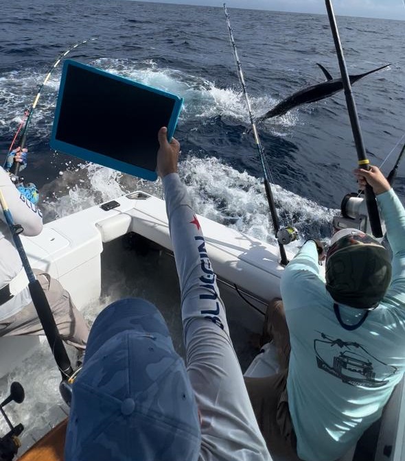 En la categoría de lanchas Sonar, la nativa Malcriá tiene cuatro agujas blancas liberadas para 1,200 puntos. La abordan los hermanos Miguel y Enrique Ricart Nadal, así como el veterano Luis Jorge.