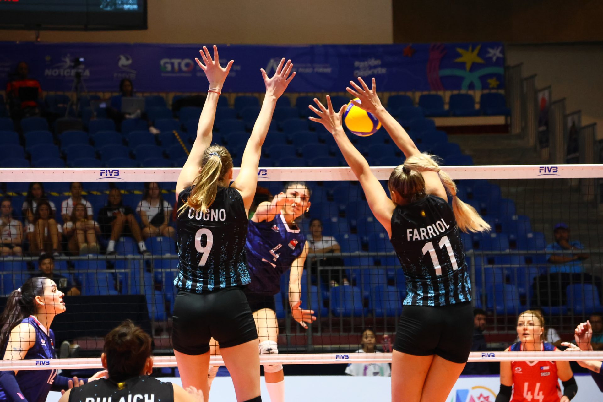 IRAPUATO, México, 19 de agosto de 2024.- Argentina llegó de atrás en el primer set, para vencer 3-0 (25-23, 25-13, 25-08) a Chile en el Grupo B en la XXI Copa Panamericana de Voleibol Femenino.