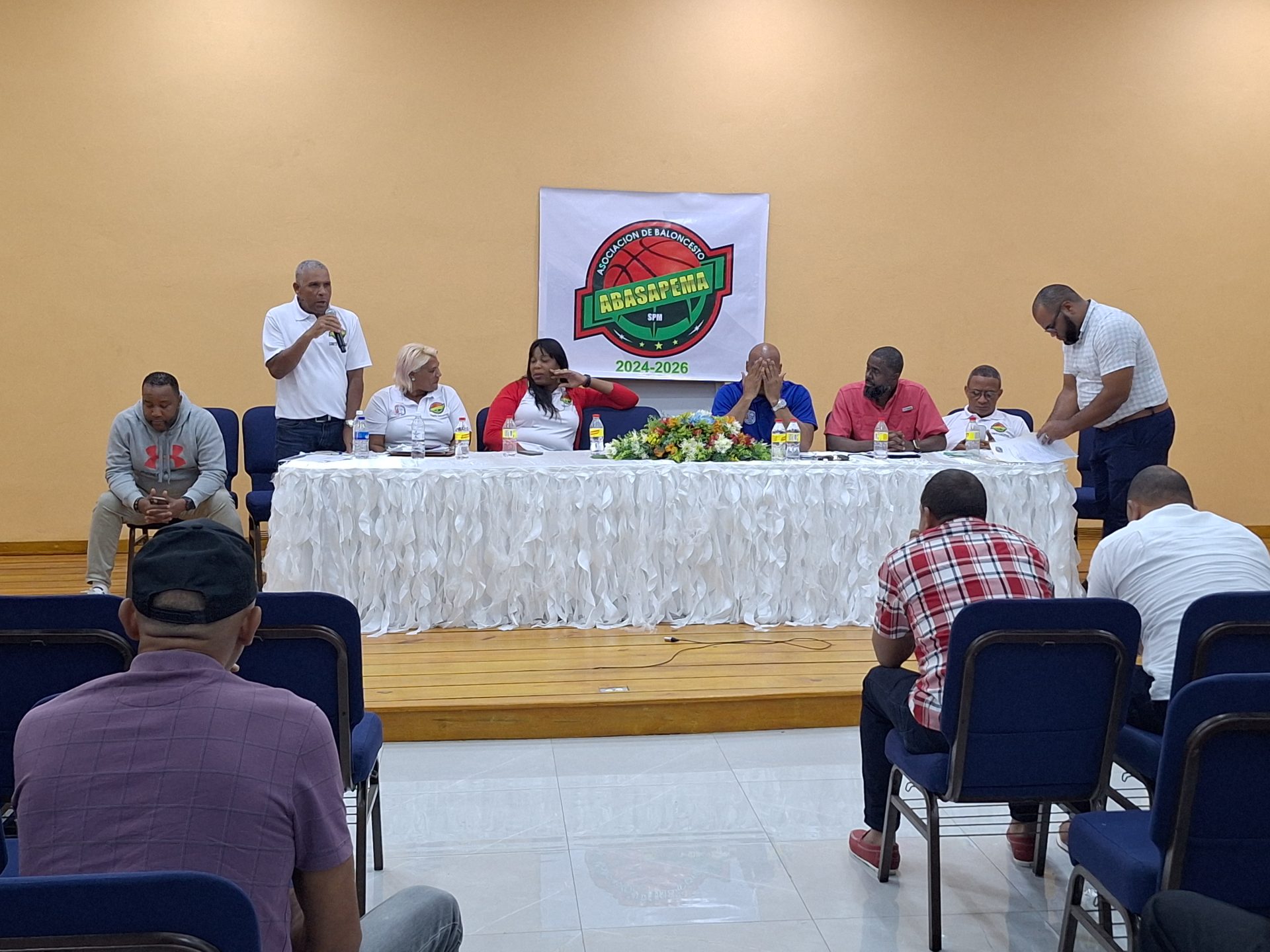 Además de los miembros de directiva de la ABASAPEMA, compartió la mesa principal el Alcalde del Municipio cabecera de SPM ,𝙍𝙖𝙮𝙢𝙪𝙣𝙙𝙤 𝙊𝙧𝙩𝙞𝙯 (𝙍𝙖𝙛𝙖 𝙋𝘾) quien tocó varios aspectos en relación al apoyo que dará dicha Alcaldía a la disciplina del aro y el balón, en aspecto económico y en las instalaciones deportivas del municipio cabecera.