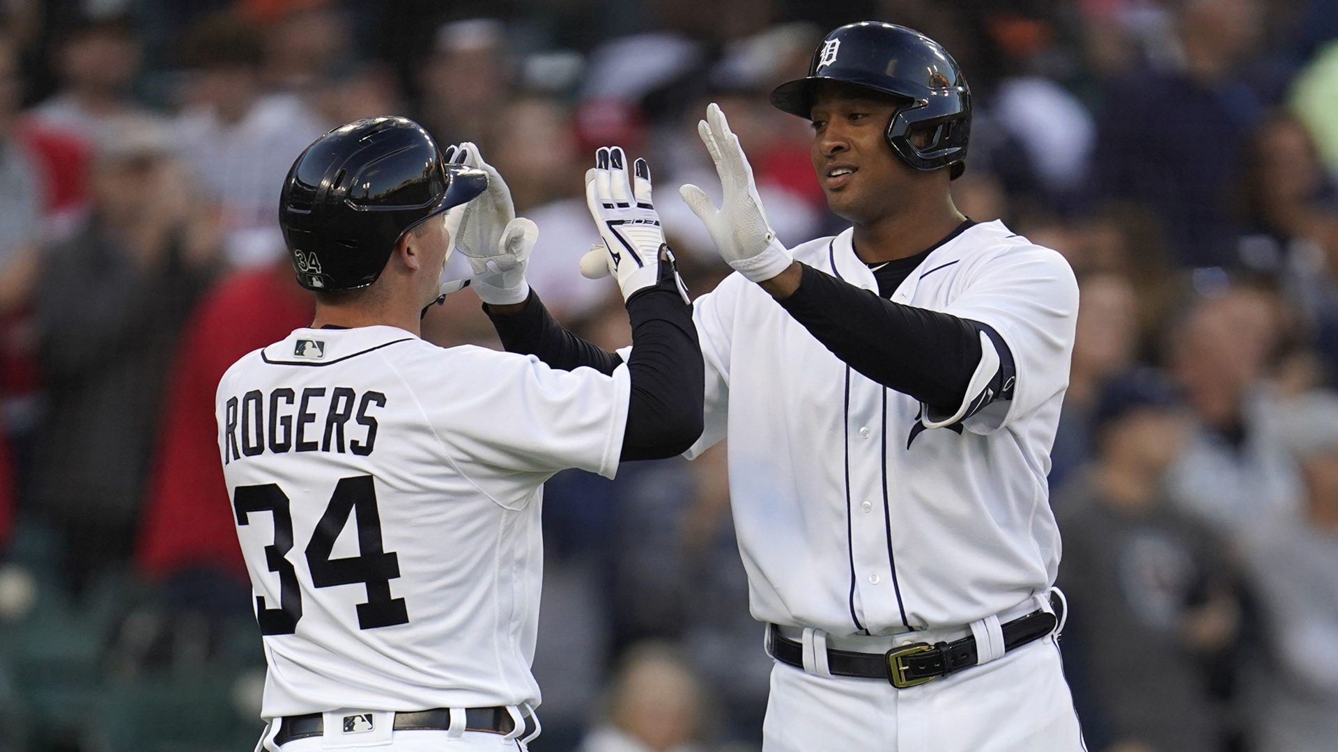 Schoop conectó un jonrón y Rogers bateó un doble de dos carreras en una cuarta entrada de seis carreras para Detroit.