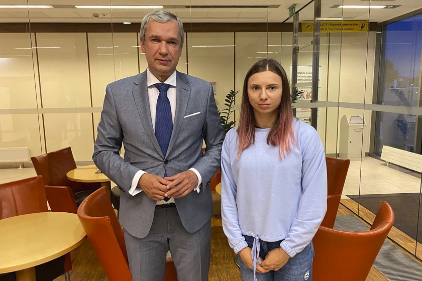 Vadim Krivosheyev, activista de la Fundación Bielorrusa de Solidaridad Deportiva, explicó que Tsimanouskaya tomó el vuelo a Austria por recomendación de las autoridades polacas.