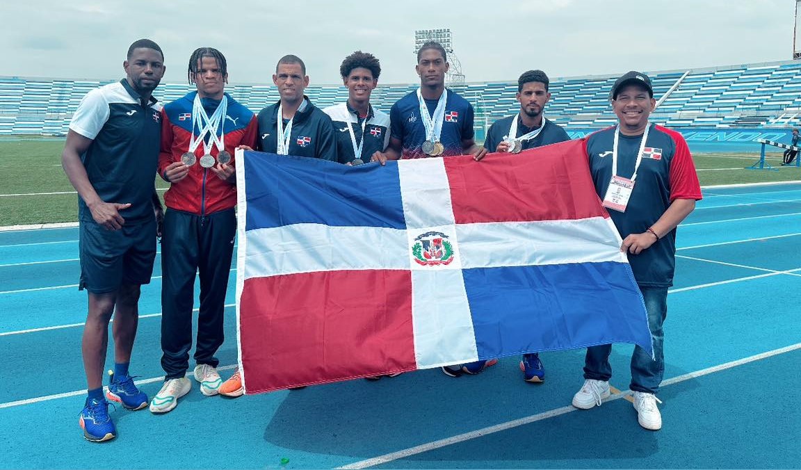 El relevo 4×100 masculino, integrado por Christopher Melenciano, Xavier Ogando, Raine Caba y Nazari Caraballo, se alzó con la plata tras facturar un tiempo de 42.87 segundos. El oro fue para la representación de Colombia, con 42.33 segundos, y el bronce recayó sobre Ecuador, con 43.88 segundos.