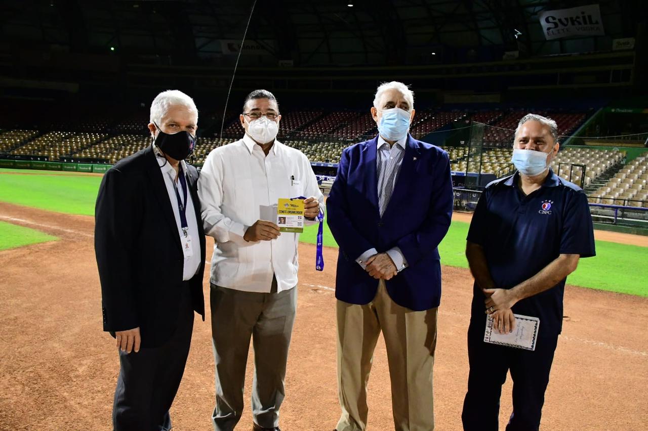 En la actividad, Ramón Ruiz, director de Marca de la Confederación de Béisbol del Caribe, entregó la primera acreditación de la justa al Ministro de Deportes, Francisco Camacho, quien es del Comité Organizador. También recibieron sus pases los licenciados Mejia Ortiz y Puello Herrera.
