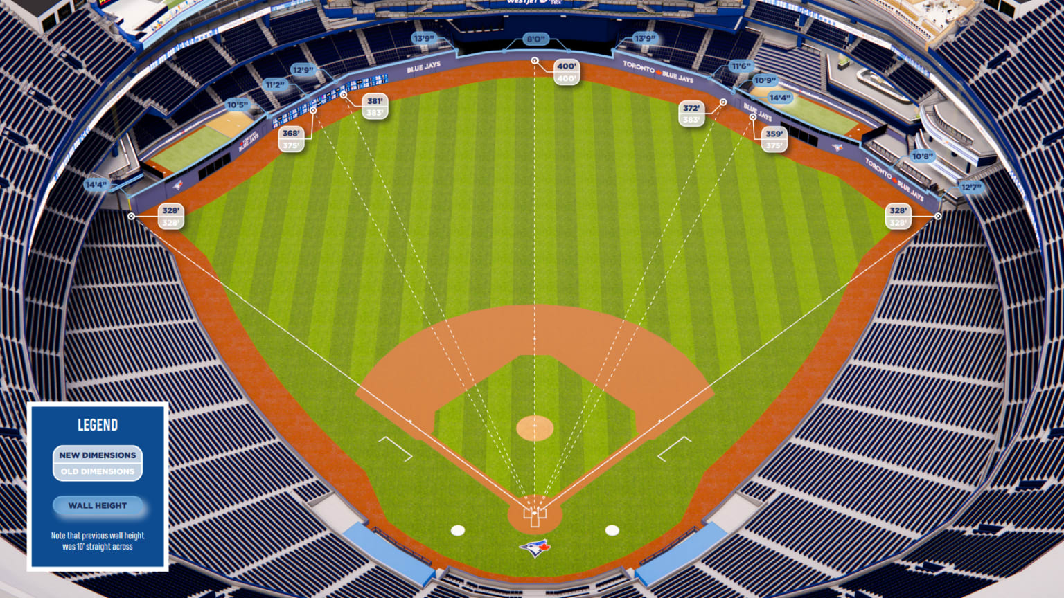 Parte importante de la renovación multianual valorada en US$300 millones en el Rogers Centre de Toronto se centra en la experiencia para los aficionados y facilidades para los jugadores, pero finalmente se dieron a conocer los detalles que afectarán el desarrollo del juego como tal.
