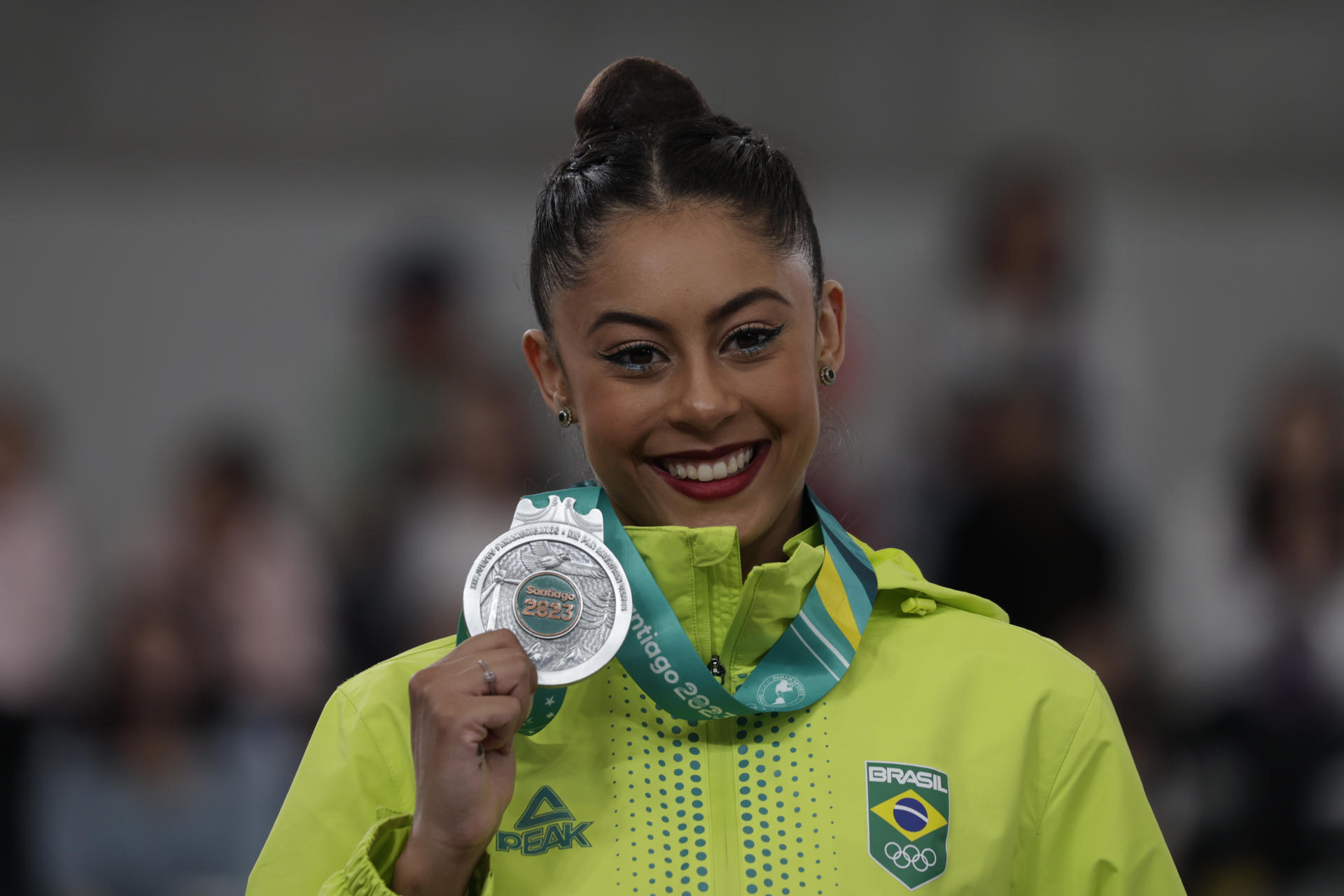 Esta es la segunda participación de la brasileña en unos Panamericanos. En Lima 2019 se llevó la plata con la cinta, ahora se colgó cinco preseas y quiere volar más alto: va por la olímpica.