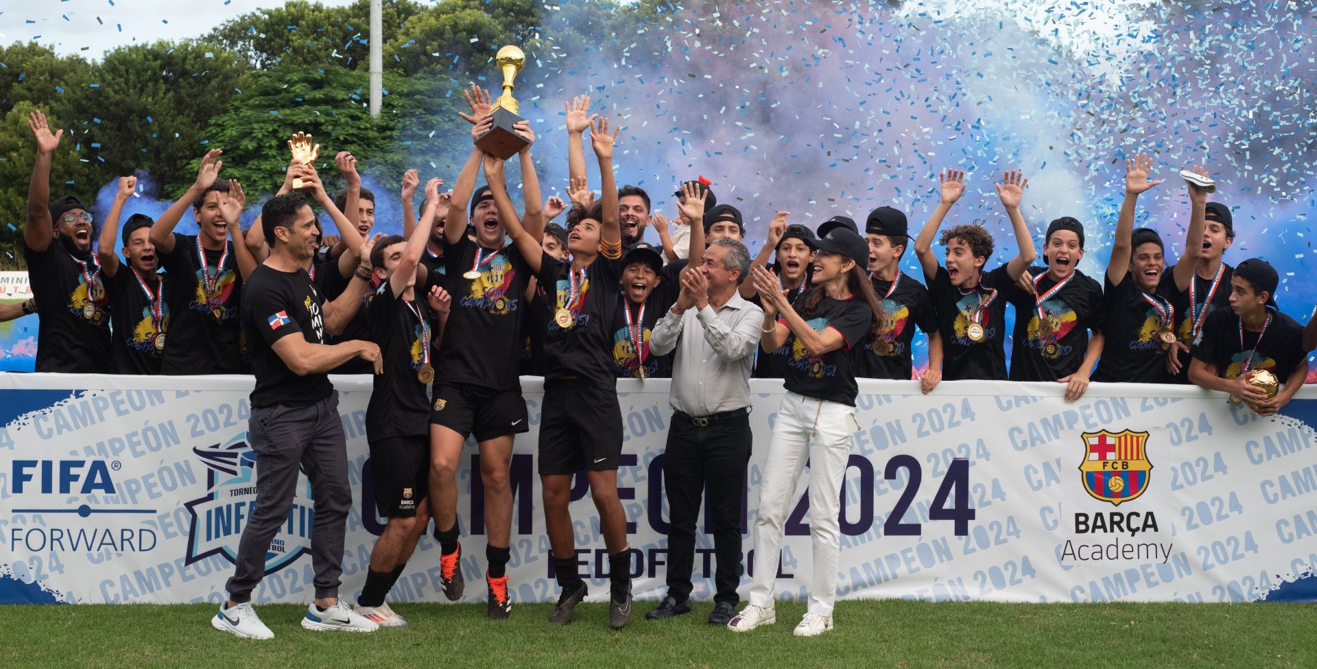 SANTO DOMINGO.- Barca Academy RD se tituló campeón tras vencer en tanda de penales a SD Colonial en la gran final del Torneo Nacional de Clubes Infantil 2024 de la Federación Dominicana de Fútbol, partido celebrado este sábado 31 de agosto en el Estadio de Fútbol Parque del Este.