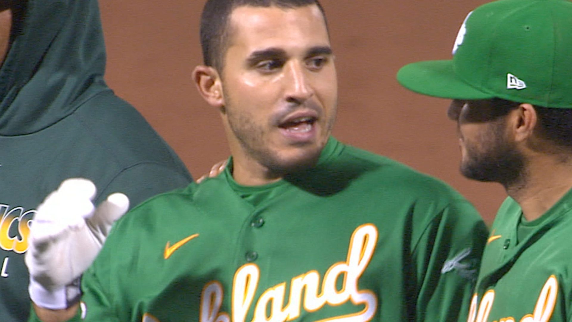 Sean Murphy obtuvo un boleto de Pressly en el comienzo del inning, antes de que Tony Kemp se llevara un pelotazo en un pie, justo cuando intentaba un toque de bola.