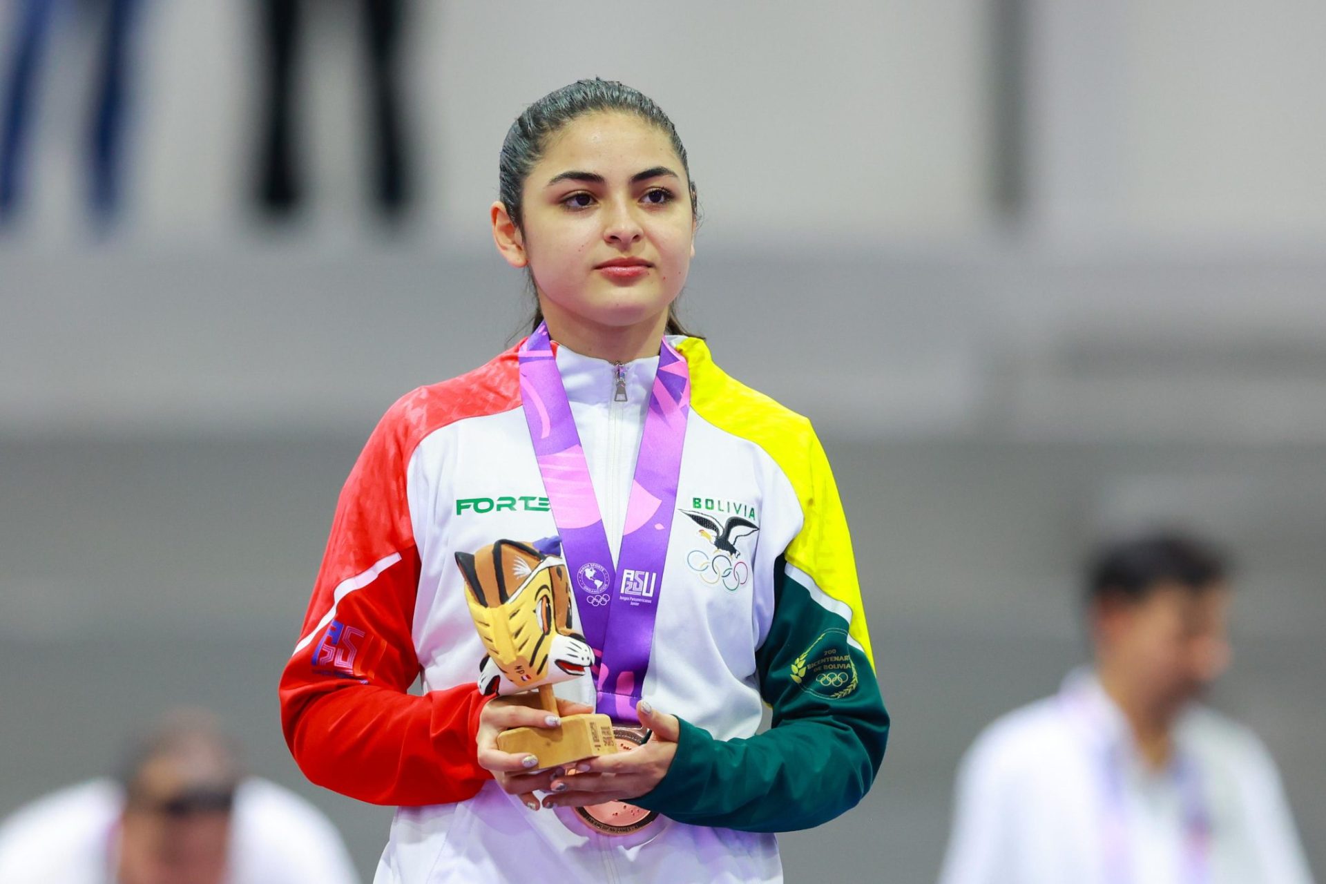 “Una joven que lucha por llevar a lo más alto del podio a su país, Bolivia. Es digna de admirar porque, como decimos nosotros, con una pierna menos compitió, pero ahí está, se lleva la de bronce”.