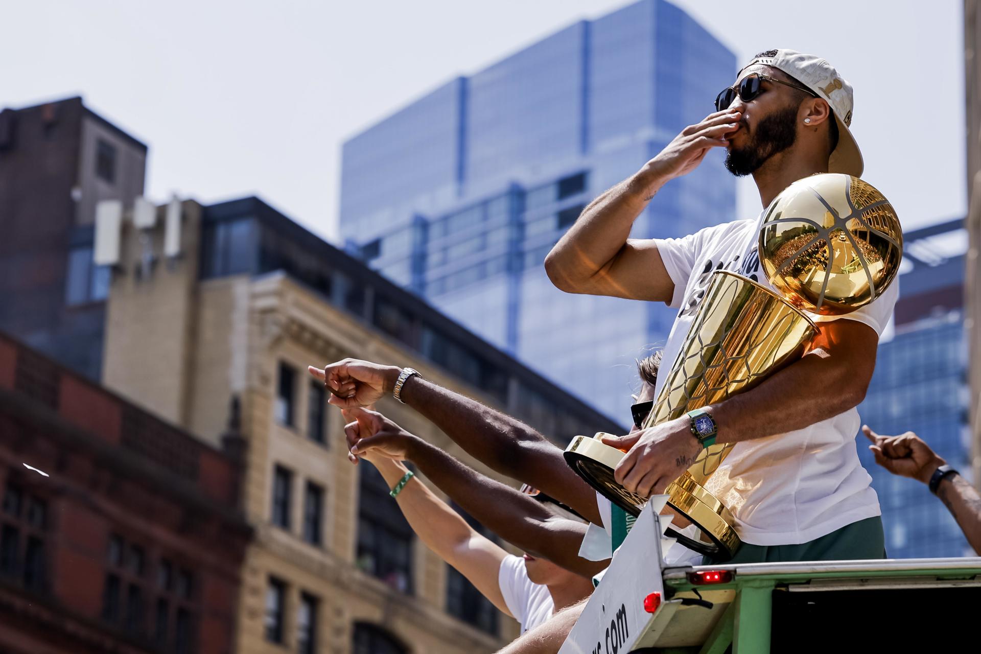 Jayson Tatum celebra el anillo número 18 por las calles de Boston. EFE/EPA/CJ GUNTHER