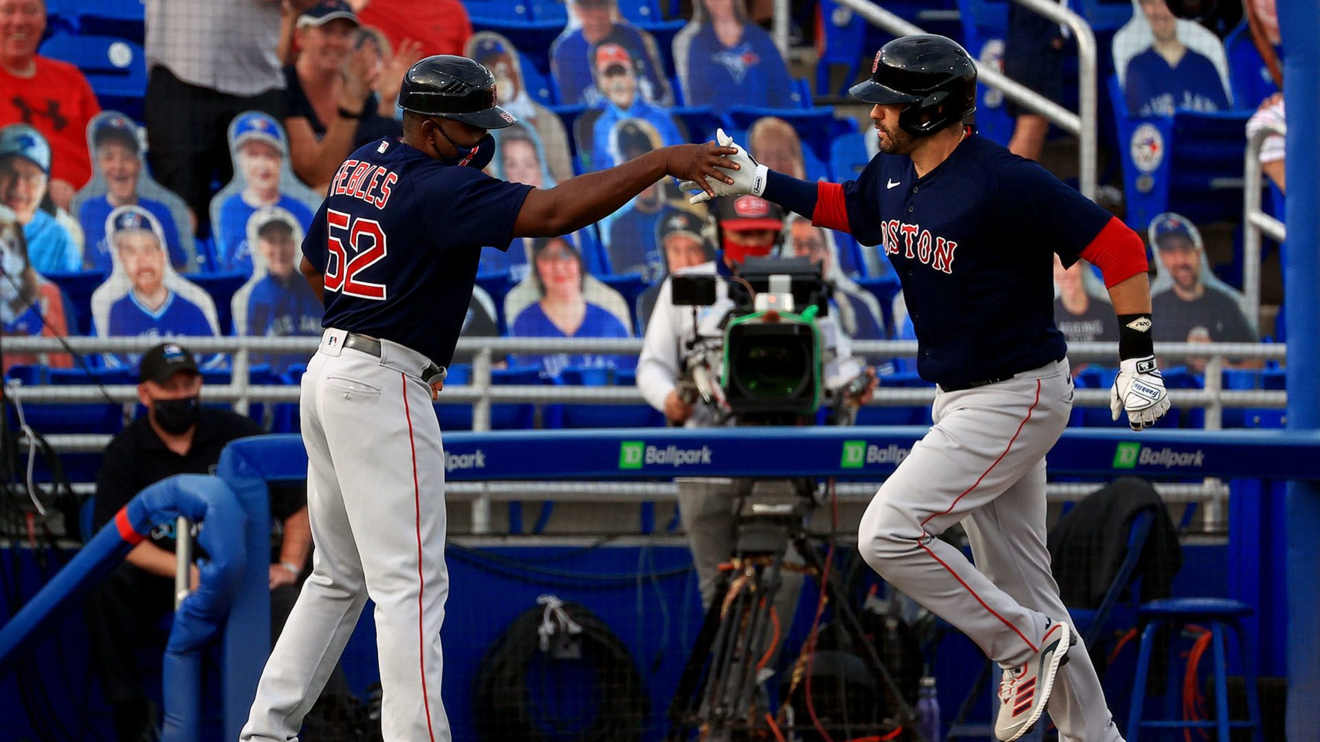 DUNEDIN, Florida.- J.D. Martínez bateó un jonrón de dos carreras que significó la ventaja durante un ataque de tres anotaciones en la novena entrada, y los Medias Rojas de Boston superaron el jueves 8-7 a los Azulejos de Toronto.