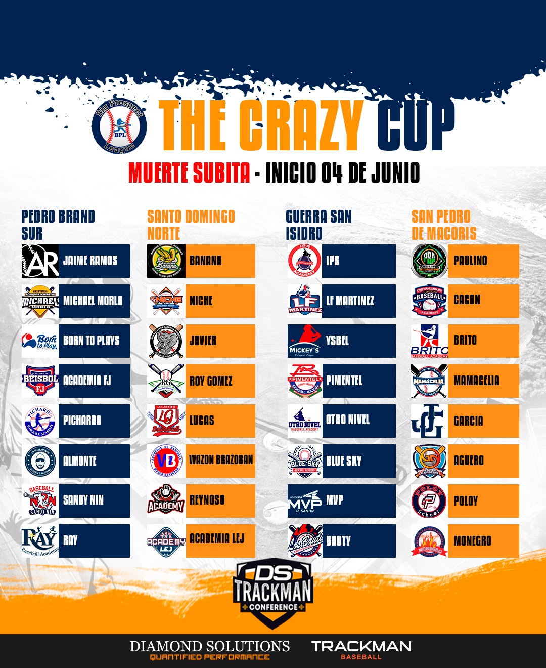 La Big Prospect League (BPL-BÉISBOL) finalizó su primera ronda del torneo Crazy Cup clase (2025-2026-27), con la participación de 32 academias que vieron acción en esta primera etapa que estuvo marcada por destacadas actuaciones en el terreno de juego.