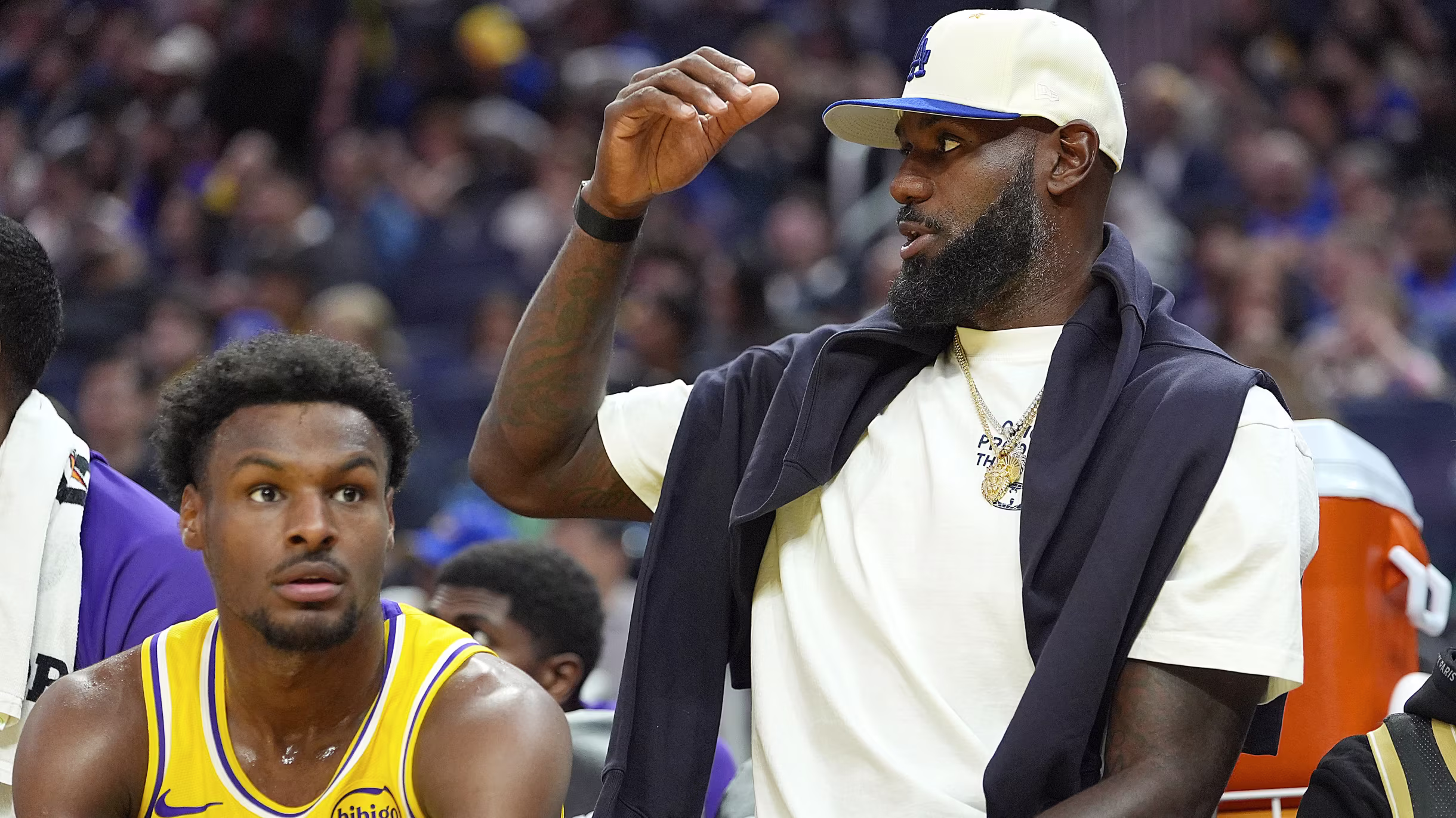 Uno de los sueños del ‘King’ en su renovación con los Lakers, consistía en recibir en el profesionalismo a su primogénito en la cancha. Así, Bronny quedó electo como pick 25 en la 2ª ronda en el Draft 2024 y el apellido “James” apareció dos veces en el roster del equipo.