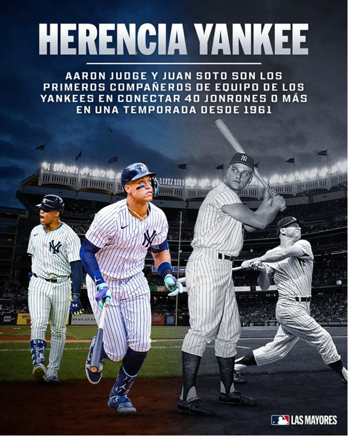 Las Mayores: Con su 40 jonrón, Soto se convirtió junto a Aaron Judge en el primer dúo de los Yankees con mínimo de esa cifra en una temporada de la MLB desde 1961 (Roger Maris y Mickey Mantle).