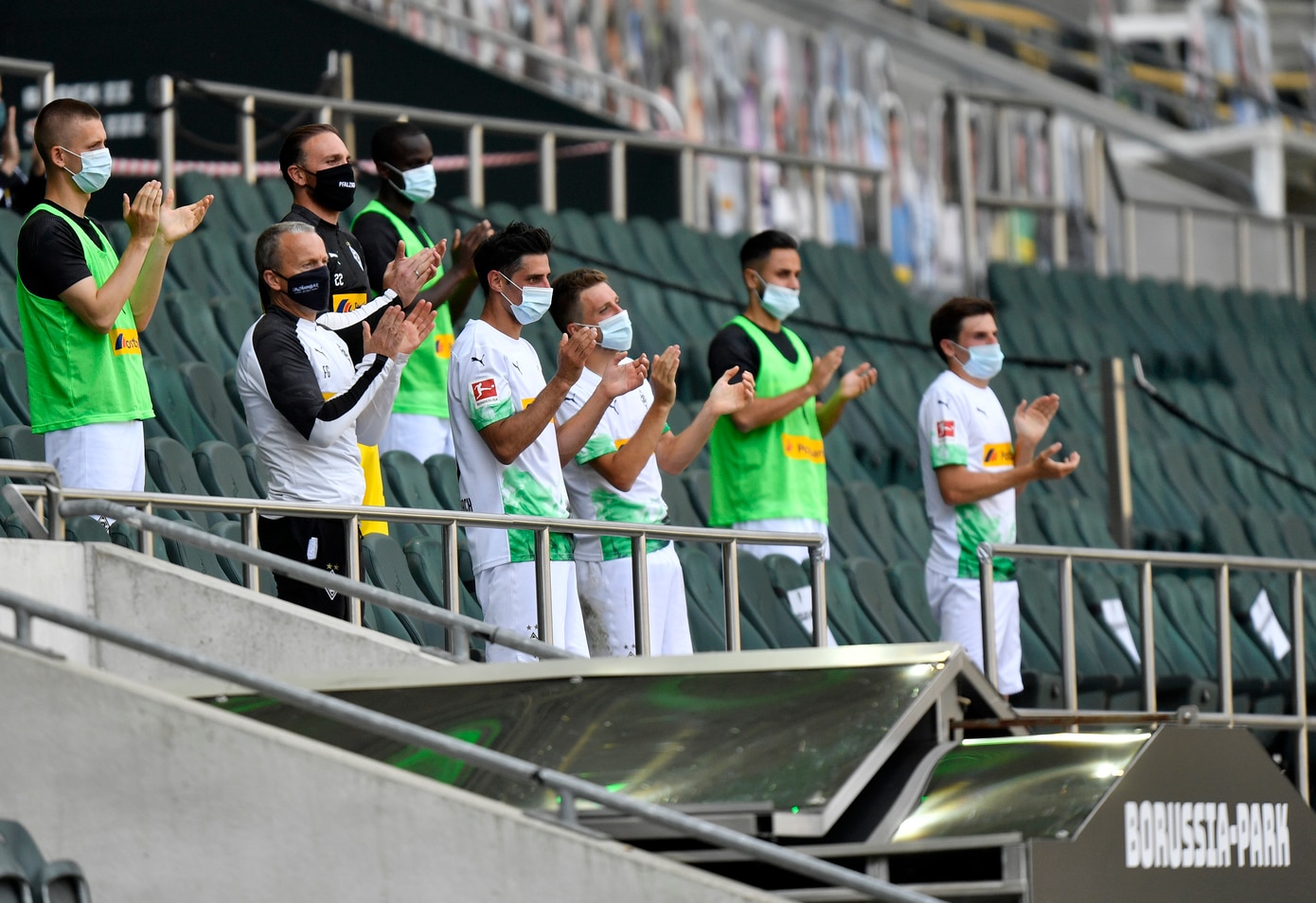 Mientras, la Bundesliga alemana de fútbol fue la primera de su clase que reanudó en el mundo. En su caso, algunos estadios permitieron la entrada de fanáticos previo a los juegos solo para que colocaran en las gradas las bufandas de las buena suerte y los mensajes en cartelones como solidaridad con sus jugadores y como disfrute para los televidentes.