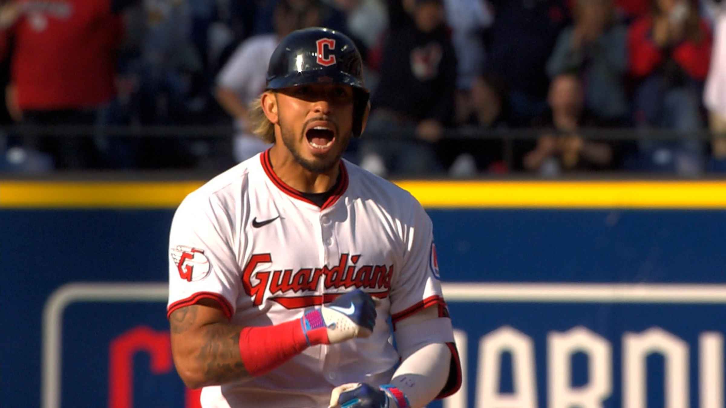 El dominicano Carlos Santana conectó un jonrón contra el relevista de los Angelinos Ryan Zeferjahn (2-1) al inicio de la séptima para empatar el marcador a cinco. Daniel Schneemann bateó un sencillo y robó segunda base antes de que Bo Naylor recibiera una base por bolas. Arias conectó un doble al jardín central en un lanzamiento de 3-2.