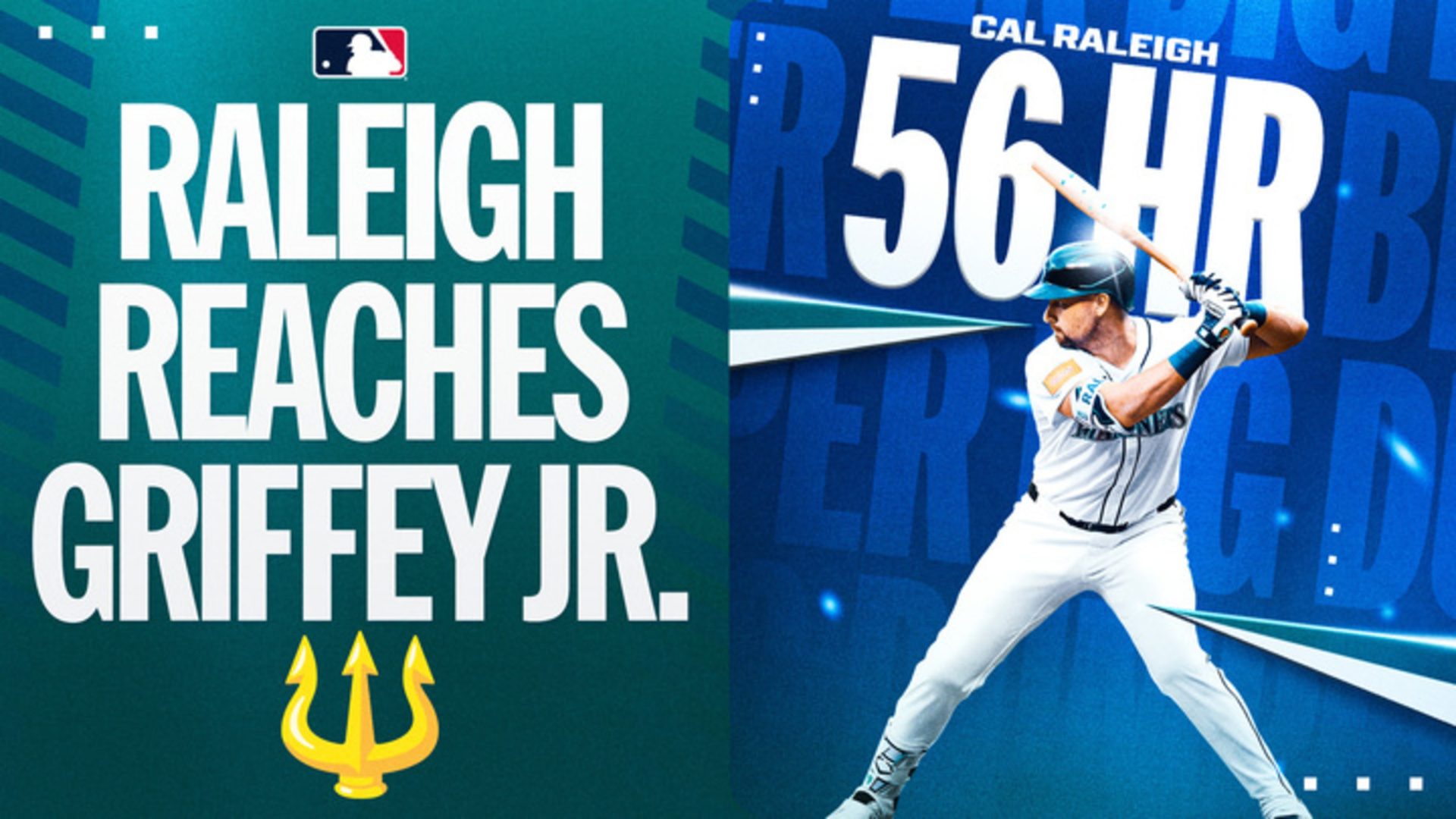 Raleigh sacudió sus jonrones 55 y 56 de la temporada el jueves en el Kauffman Stadium, superando a Mantle (1961) como líder entre bateadores ambidiestros antes de igualar a Ken Griffey Jr. (56 en 1997 y 1998) con la mayor cantidad en una sola campaña en la historia de los Marineros.