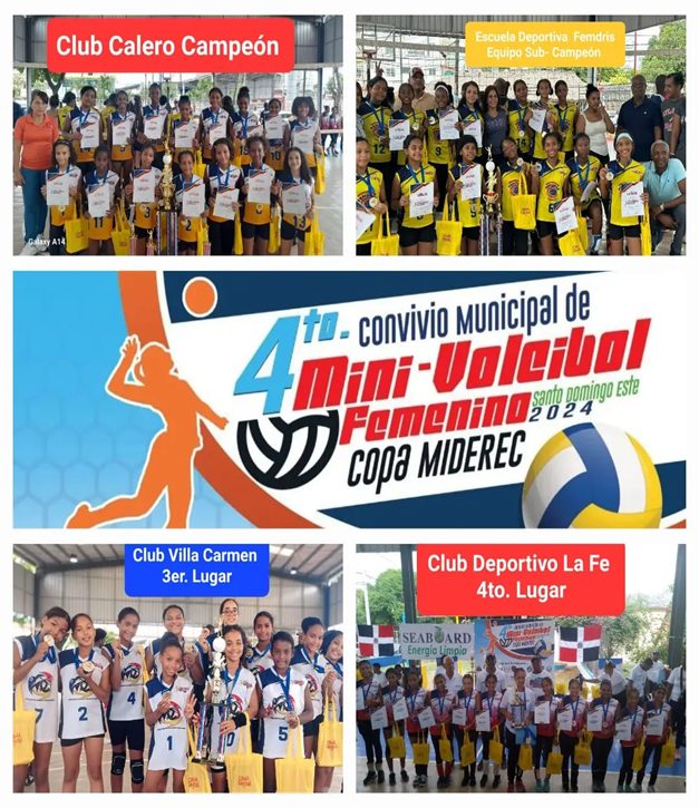 Santo Domingo.- El equipo del Club Calero se proclamó campeón del Cuarto Convivio Municipal Femenino de Minivoleibol 2024, adjudicándose la prestigiosa Copa Miderec.