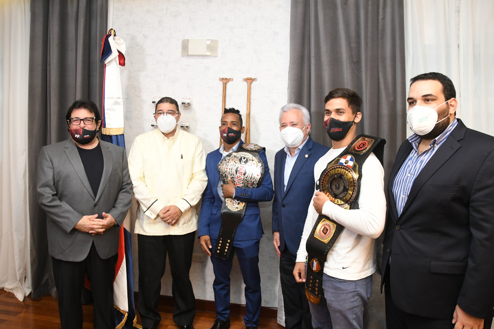 SANTO DOMINGO.- El ministro de Deportes, Francisco Camacho, recibió este lunes en su despacho a Wascar «La Avispa» Cruz, primer peleador dominicano de artes marciales mixtas que logra un título mundial, y a Micaías Ureña, campeón nacional de las 135 libras de la promotora Fighting Force.