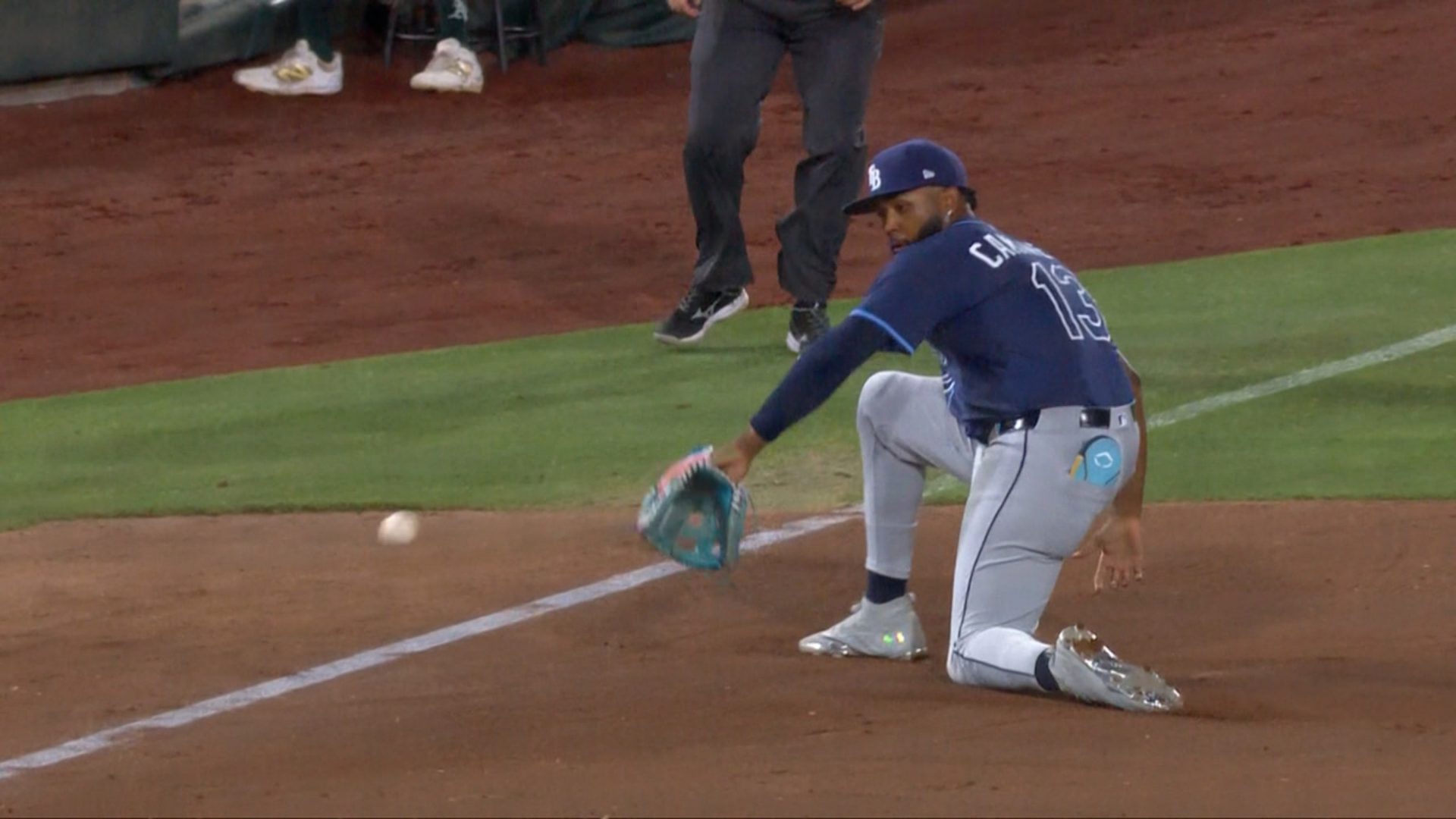 Correcto. Pero notarás que cada logro mencionado anteriormente proviene de su potente bate, y todos los vuelacercas podrían haber ocultado un tipo diferente de mejora que podría terminar siendo vital no sólo para el futuro de Caminero, sino también para la composición del lineup de los Rays: A diferencia de lo que ocurría a principios de este año, la defensa de Caminero en la tercera base ya no es un problema para el pitcheo de Tampa Bay. De hecho, podría ser un aspecto positivo.